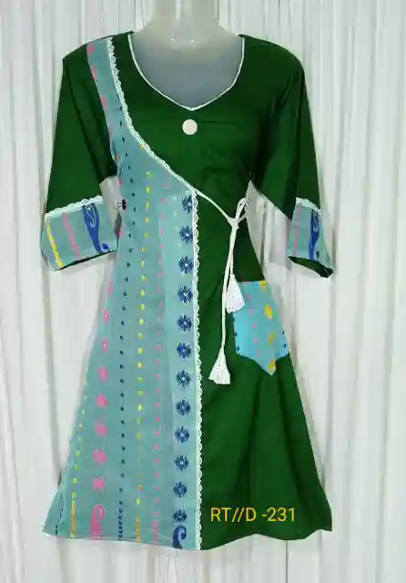 Buy Pure Cotton Fashionable kurties from Ladies Fashion Hub at best Price. This is made by Jamdani and Cotton fabric. Jamdani is a fine art hand weave Fabric. One of most Bengal Traditional dress which you can wear in occasion, office or as casual wear. Get Free Shipping and COD Checkout anywhere in India.