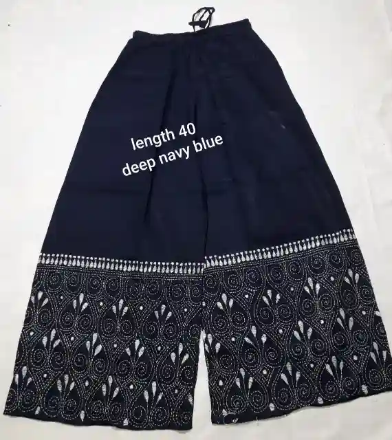 Buy Cotton Palazzo Pant from Ladies Fashion Hub at best Price. Best quality cotton Embroidery Palazzo Pant. Free size Cotton Palazzo Pants. Best upto 48 size. Kantha Stitched hand work on the bottom part of the pants. Order with COD and Free Shipping all over India.
