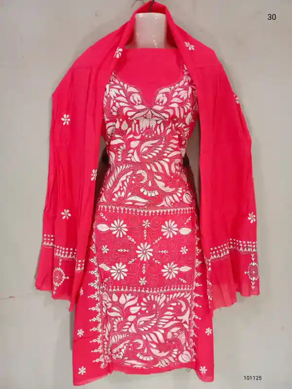 Buy Pure Cotton Dress Materials with hand woven Embroidery. Bengal has an old tradition of Kantha embroidery. Shop for Kantha Stitched Salwar Suit including upper bottom and dupatta. Shop for exclusive collection of Salwar. Kantha Stitched design is unique in design. Cash on Delivery Available all over India. Additional discount on Prepaid Order.